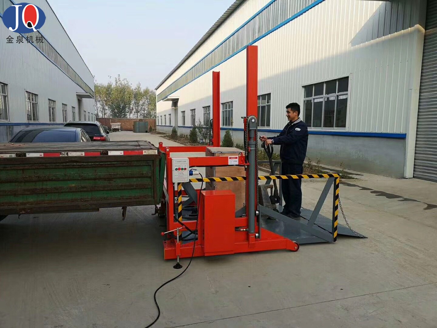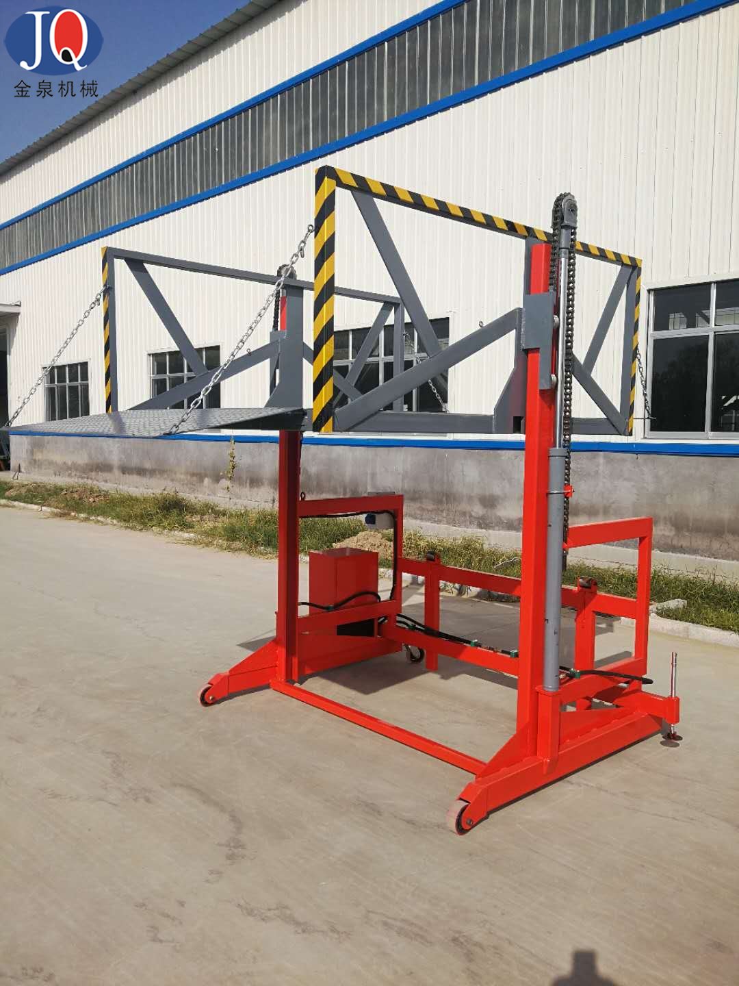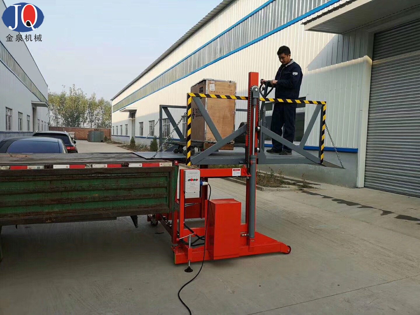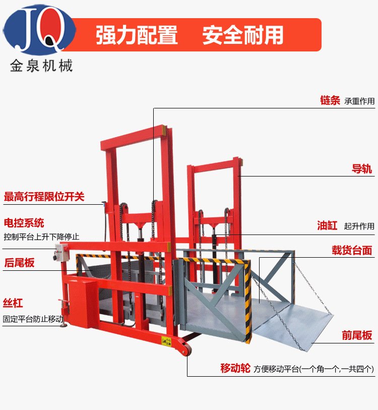 6.液壓系統及電器控制系統安裝在該設備側面,便于維修及預防車輛在裝載貨物倒車時頂撞到該電控箱;
