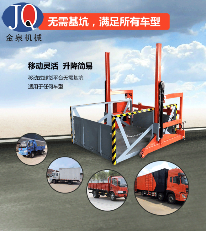 2. 由于裝載車輛車箱有高低現象,本機已設置平臺舌板的滑輪調節板,用戶可根據裝貨車的高低自行調節高度。